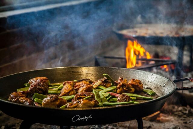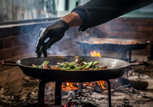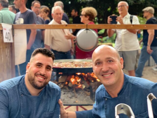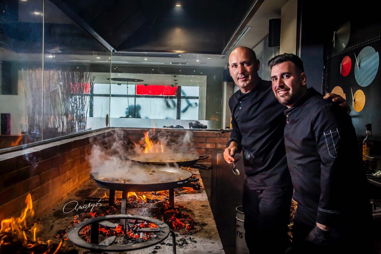 Antonio y David prenden los fuegos de martes a sábado y para dar de comer a mediodía. De buena mañana se visitan mercados y proveedores seleccionando los productos frescos y de temporada que compondrán los entrantes previos al cocinado de sus arroces, al igual de los que tengan que caer en las paellas.